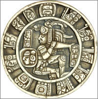 The stone slab is somewhat changed from the original (in original about 55cm), the purpose is to be used in a ritual game of ball. It was found in Chinkultik in Chiapas Square for the game and shows a kneeling sportsman with a protective belt and a decorative headgear. Before him is placed a considerably large ball for the game which was very popular.