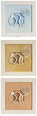 Plaster decorative elements present animals sculptured in the style of symbols bas-relief Nasca, on this one: Monkey (Simio).