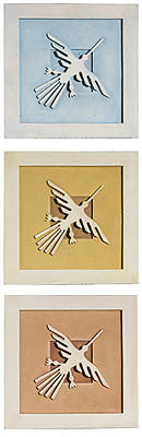 Plaster decorative elements present animals sculptured in the style of symbols płaskowyżu Nasca, on this one: Eagle (Pajora).